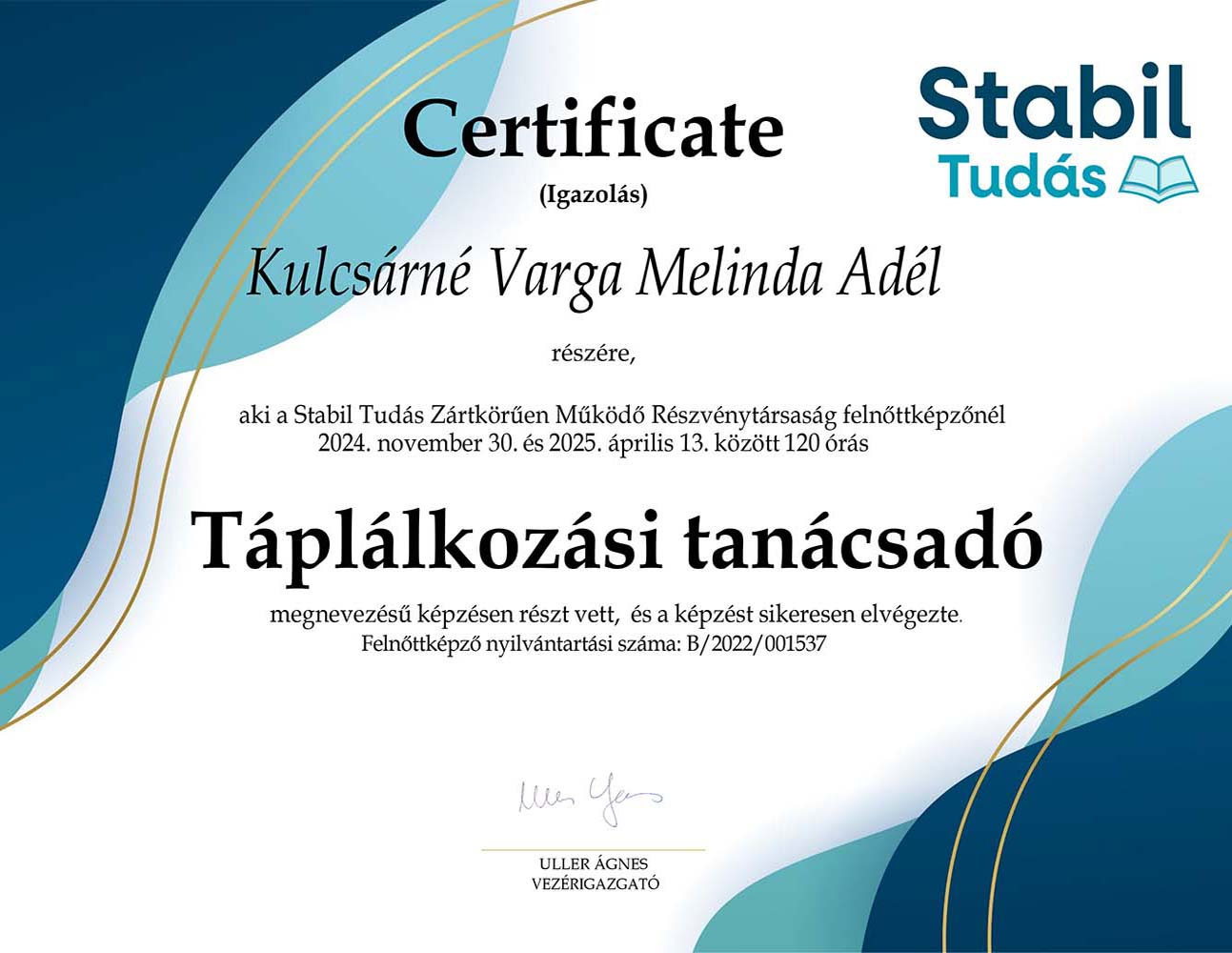 tanúsítvánnyal rendelkező táplálkozási tanácsadó